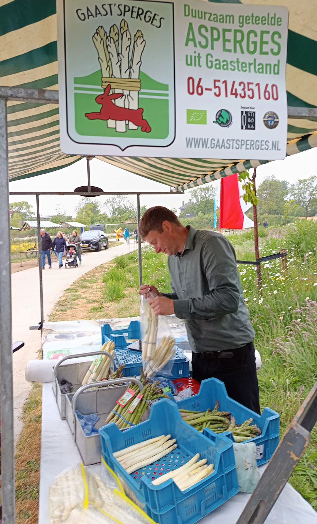 Jelmer Albada van Gaastsperges verkocht zijn asperges bij de opening van het Balklandpark (foto: Henriette Le Roy)