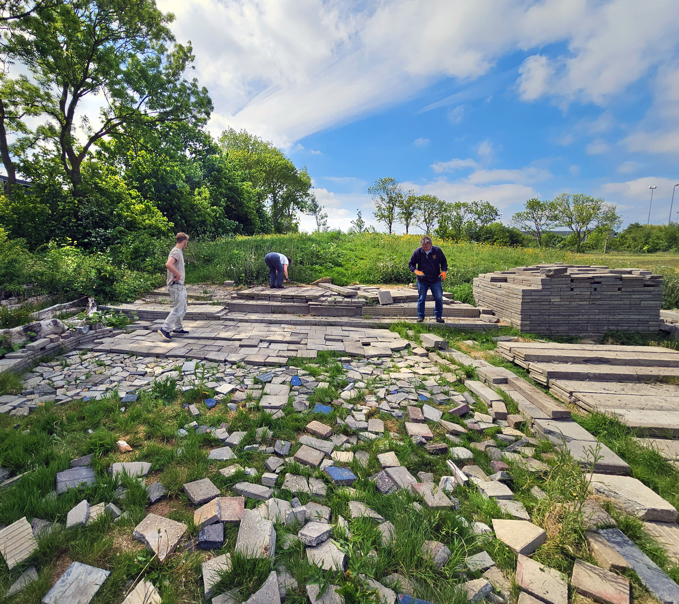 Onverstoorbaar ordende ik, korte tijd later, al het puin à l'improvise tot fraaie wandelpaden en liet als souvenier een steen - de steen des aanstoods - achter mij, in een 'kleurig' geordend gedeelte van de wilde tuin, duidelijk zichbaar, liggen.